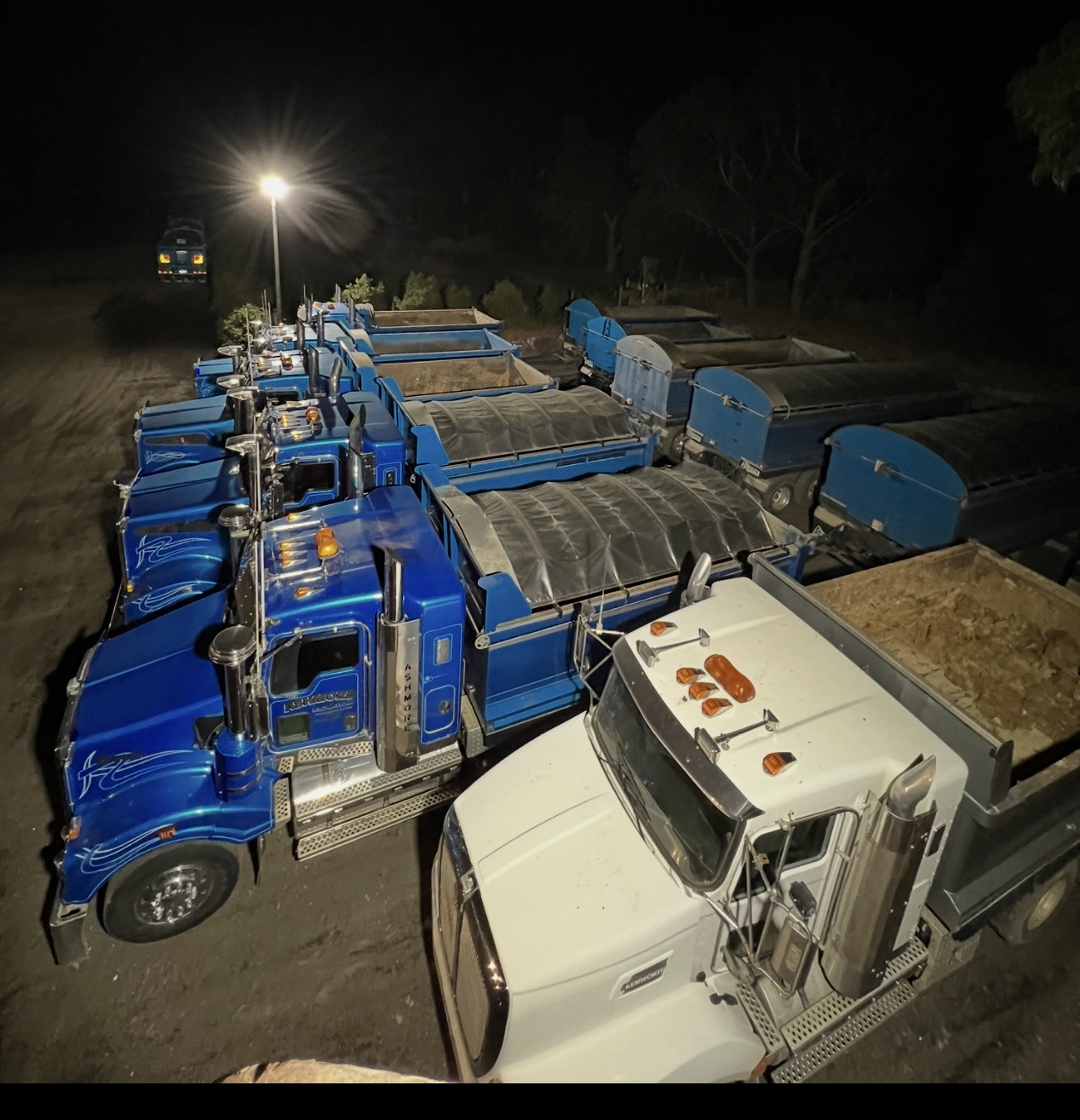 High-powered LED flood lighting installation for a trucking depot — illuminating the entire yard for safe night operations.